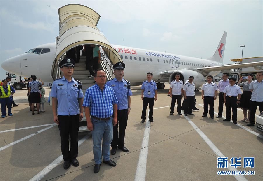7月13日,在武汉天河机场,“百名红通人员”朱海平从美国回国投案自首。