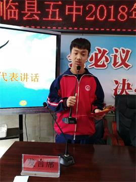 保剑锋从磨砺出,梅花香自苦寒来。百日冲刺战中考,不拿高分誓不休!春风和煦,阳光明媚,在播种希望的季节里中考的脚步又一次向我们走来。为鼓舞初三学子士气,增强斗志,备战中考,3月12日,临县五中在学校会议室隆重举行了2018年中考百日誓师大会。学校校长牛宝明、副校长郭卫平、闫志峰、初三全体师生参加了中考誓师大会。