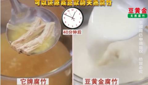 是一家在外包装上给消费者郑重承诺: 如检测出豆黄金天然腐竹添加任何有害物质奖励现金10万元