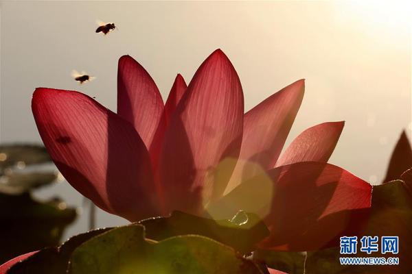 山东荣成湿地公园荷塘,蜜蜂在荷花间飞舞。