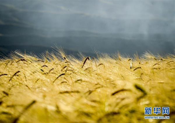 新疆木垒哈萨克自治县天山木垒中国农业公园里,成熟的小麦在夕阳照射下散发出迷人的金色。