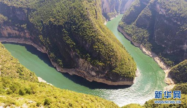 重庆巫山小三峡鱼头湾一带漫江碧透、景色如画。