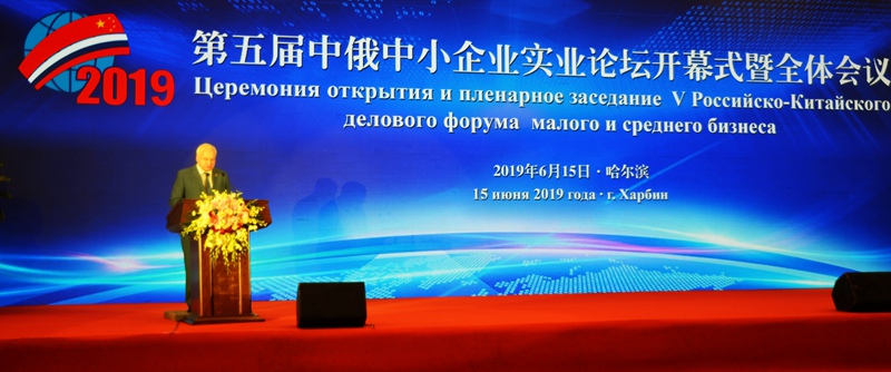 【中国经济新闻联播哈尔滨讯】2019年6月15日下午,第五届中俄中小企业实业论坛开幕式暨全体大会在哈尔滨国际会议中心举行。原国务委员、中俄友好、和平与发展委员会中方主席戴秉国,黑龙江省委书记、省人大常委会主任张庆伟,俄中友好、和平与发展委员会俄方主席鲍里斯.季托夫,黑龙江省人民政府省长、中俄友好,和平与发展委员会地方合作理事会中方主席王文涛出席了开幕式并发表致辞。黑龙江省委常委秘书长办公厅主任张雨浦、中国外交部欧亚司大使岳斌,黑龙江省政府秘书长、办公厅主任王冬光出席了开幕式。中国诚通控股集团总裁朱碧新、贵州茅台集团习酒有限公司党委书记、董事长钟方达、长春国际陆港发展有限公司董事长王玥出席了开幕式并发表致辞。会议由黑龙江省人民政府副省长、中俄友好、和平与发展委员会地方合作理事会中方秘书长程志明主持。