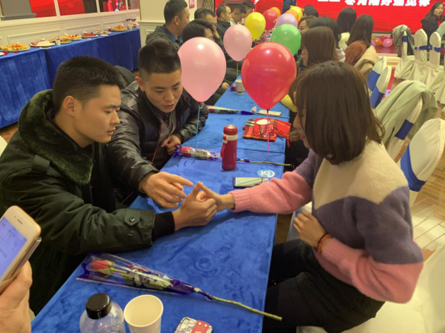 “团结就是力量……”才艺展示环节中,军人小伙子们一首高亢的军歌赢得现场女嘉宾的阵阵掌声。“立正、稍息、跨立……”严整的军姿,标准的队列,将军人的阳刚之气完美呈现出来。随后,几个暖场小游戏打破了现场的拘谨和陌生,大家快速进入状态、融入现场活动,并与心仪的异性,互留联系方式。男嘉宾们鼓起勇气,为自己中意的献花示爱。3对青年最终在大家的见证下牵手成功,甜蜜相拥。
