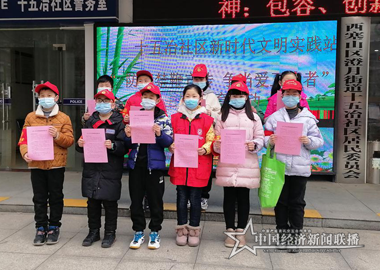 【中经联播湖北黄石2月8日讯】春节将至,为了提高辖区未成年人防疫、禁鞭及环保意识,进一步弘扬志愿服务精神,营造一个安全、舒适、文明的社区居住环境,2月8日,湖北黄石市十五冶社区新时代文明实践站组织辖区未成年人开展寒假“防疫禁鞭宣传 争当爱卫使者”志愿服务活动。十几名小志愿者们一个个戴着小红帽、袖章,兵分两组开展志愿服务活动,一组小志愿者拿着小喇叭在辖区内巡逻进行防疫知识宣传,一组小志愿者拿着宣传资料在辖区主干道、人口密集地向过往居民发放防疫和禁鞭知识宣传资料,“爷爷好,奶奶好,春节请不要燃放烟花爆竹,您出门一定要记得带口罩,做好自身保护,并祝您新年幸福快乐!”一声声稚嫩的声音在辖区荡漾。小志愿者们还拿着钳子、垃圾桶开展爱国卫生清洁活动。他们认真捡拾地面白色塑料垃圾、烟头等废弃物,他们走到哪里,就把哪里的路面果皮纸屑和丢弃的烟头捡拾起来。过往的居民看到孩子们辛勤工作的场景,不约而同地竖起大拇指。