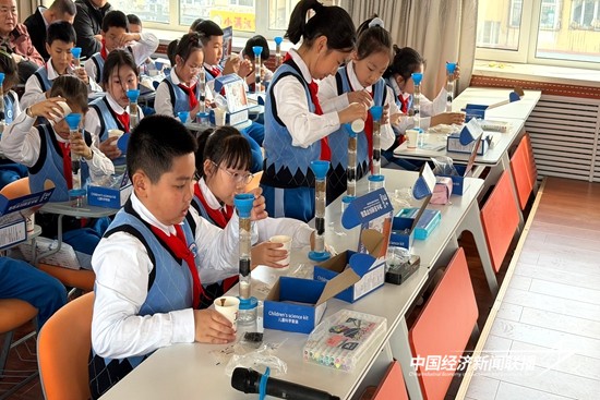 实验台展示区成为本次活动的人气打卡点,市中环水务公司的技术人员现场为学生们讲解物理过滤、活性炭吸附、絮凝沉淀的净水过程,带领孩子们一同自制净水装置,过滤棉、活性炭、石英砂等材料在技术人员的指导下被一个个组装起来,学生不仅在动手组装净水装置的实践中深入理解净水原理,更激发了科学探索的兴趣与热情,体会到水资源净化的不易,懂得了珍惜每一滴水的重要性。
