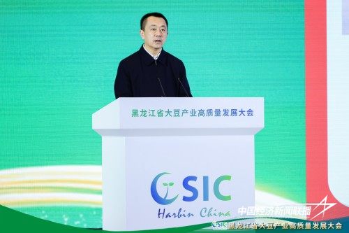 黑龙江省农业农村厅党组成员、副厅长张雨在发言中着重强调,黑龙江是农业大省,也是全国大豆最重要产区,得天独厚的自然环境和资源禀赋,为大豆全产业链发展提供了优越的基础条件。近年来,全省农业农村系统按照省委、省政府部署要求,认真贯彻落实习近平总书记“中国粮食、中国饭碗”殷切嘱托和扩种大豆油料的重要指示批示精神,坚决扛起维护国家粮食安全的政治责任,因地制宜制定实施扶持大豆生产各项政策措施,扎实开展主要粮食作物大面积单产提升行动。2025年,全省大豆再获丰收,播种面积达到6880万亩、产量超过180亿斤,均居全国第一位,为提高大豆自给率,保障初级农产品供给安全做出了龙江贡献。我们将以此次大会为新起点,携手各方、砥砺前行,共同谱写龙江大豆产业振兴新篇章,为保障国家粮食安全、加快建设农业强国作出新的更大贡献。