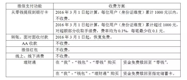 A:从2016年3月1日起计算,从零钱提现到银行卡,每位用户(身份证维度)有累计1000元免费提现额度,超出1000元的部分按0.1%的银行费率收取手续费。