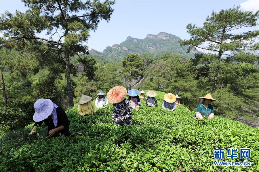 近日,福建省武夷山市天气晴好,当地茶农忙着采摘武夷岩茶大红袍。武夷山市是福建省著名的茶叶产区,茶产业是当地农民致富的支柱产业。新华社发(邱汝泉 摄)