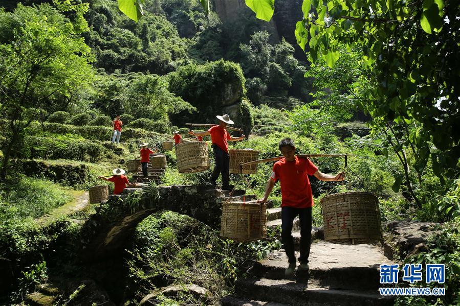 5月9日,福建省武夷山市天心村茶农挑运采摘的武夷岩茶。