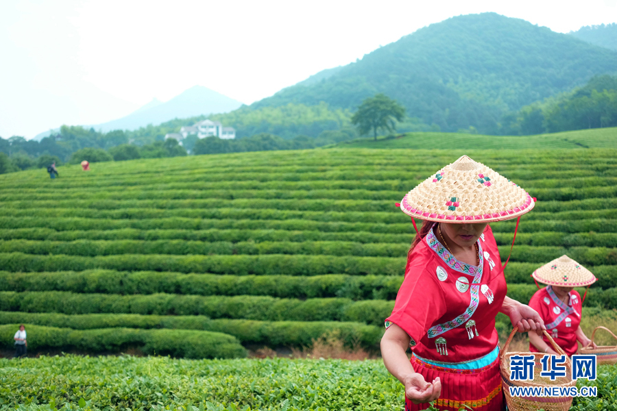 敬亭山茶场采茶工人采集夏茶。新华网陈俊松 摄