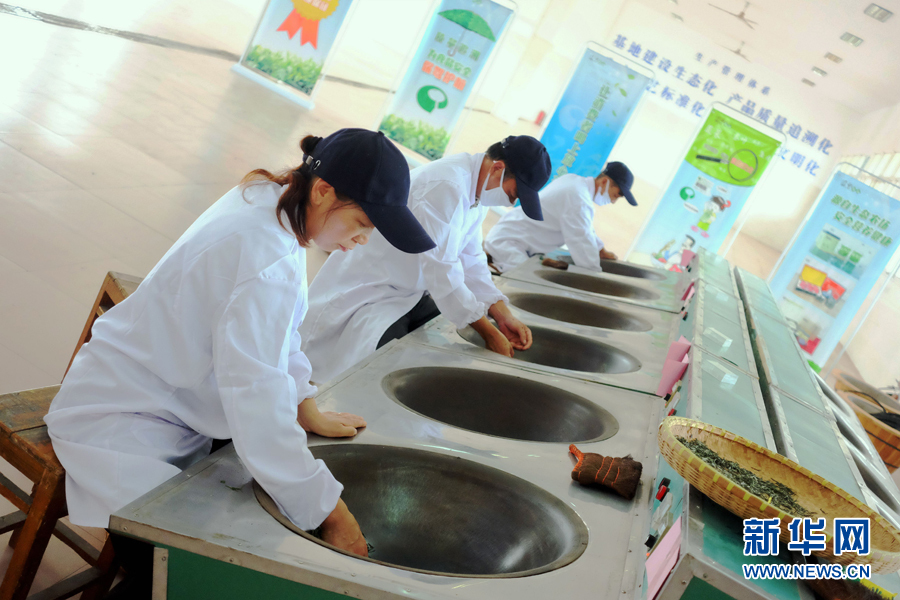 茶场工人翻炒茶叶。新华网陈俊松摄