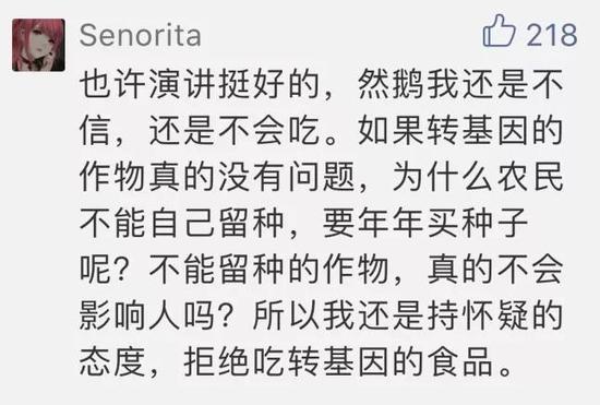 再给大家分享一条资讯:2016以来,已经有134名诺贝尔奖获得者签署联名公开信支持转基因技术,其中117人为自然科学奖得主,包括47位生理学和医学奖得主。如此众多的诺贝尔得奖科学家签名支持某一特定专业领域的科学技术,这在现代科学发展史上前所未有。其实,转基因争论让科学家“很受伤”,甚至有科学家将这场争论上升到捍卫科学尊严的高度。