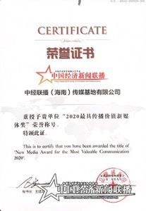 中国经济新闻联播9月9日海口电【记者张晓敏】9月9日,被业界誉为亚洲品牌年度“奥斯卡”的第15届亚洲品牌盛典在海南自贸港举行,中国经济新闻联播作为新领军媒体,从众多媒体中脱颖而出,荣获第15届亚洲品牌盛典“2020最具传播价值新媒体奖”。