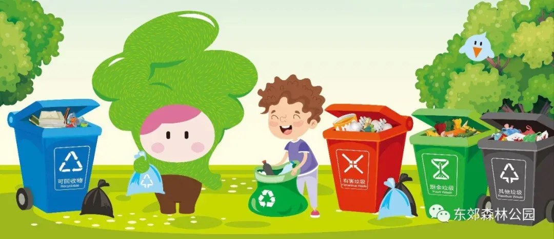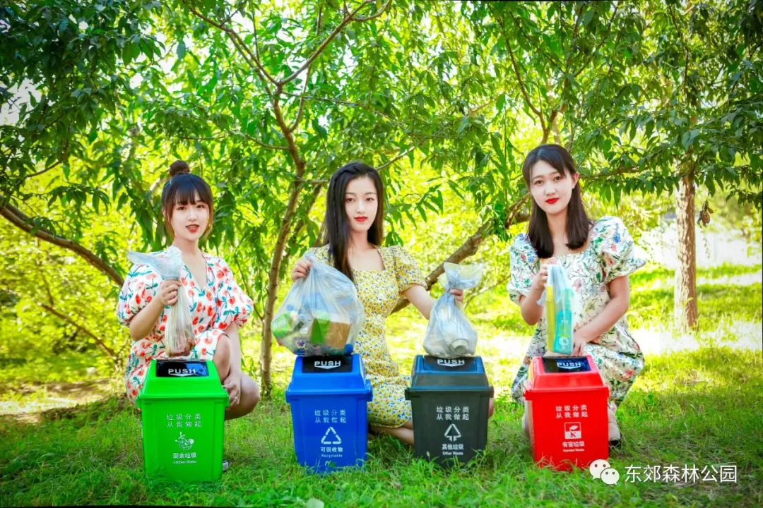 东郊森林公园为游客们准备了四分类垃圾桶
