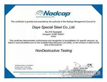【中经联播湖北黄石2月4日电】美国航天航空认证NADCAP管理委员会向中信泰富特钢集团大冶特殊钢有限公司(以下简称大冶特钢)颁发了无损探伤工艺认证资质证书。过去一年,大冶特钢申请的材料测试、热处理两个NADCAP认证项目已先后获证。连获三证,标志着大冶特钢在建立高端供应链战略上取得重大突破,也充分展现了中国特钢行业在国际市场开拓方面的实力和潜力。