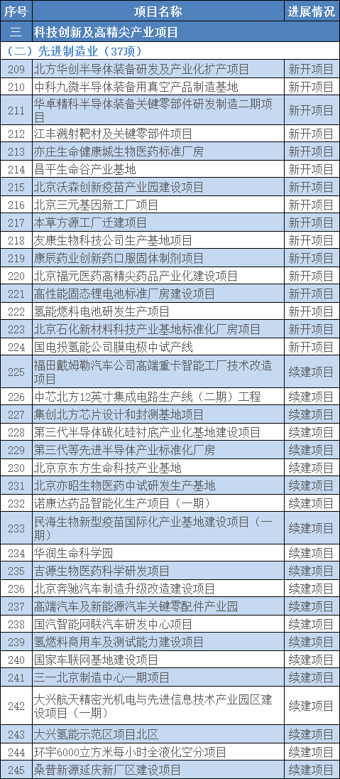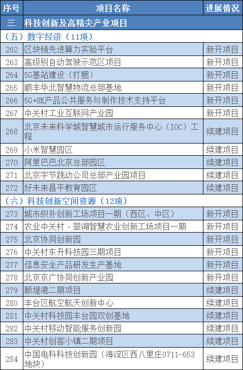 更加突出国际科技中心建设,将原有的高精尖产业领域拓展为科技创新及高精尖产业领域。积极打造数字经济先导区和示范区,新增一批数字经济新基建项目。加快释放“两区”建设和“五新”政策巨大动能,围绕集成电路创新链、生物医药、新能源和智能网联汽车等实施一批重大智能制造项目,围绕“双枢纽”实施一批重大服务业开放项目。