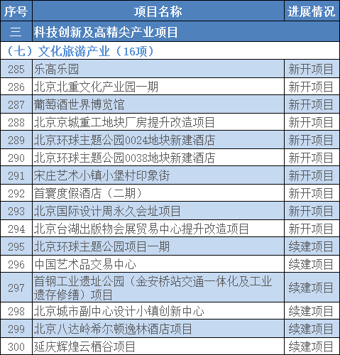 100个科技创新及高精尖产业项目