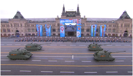 与往年一样,今年的红场胜利日阅兵方阵包括徒步方阵、机械化方阵和空中编队。阅兵队伍由超过1.2万人组成,76架直升机和飞机飞过红场上空。