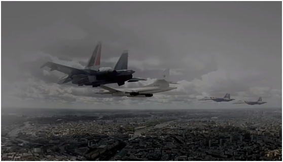 在空中编队中,苏-35不仅与图-160轰炸机并肩出场,还单独组成了4机编队进行展示,以及与苏-30SM战斗机、苏-34轰炸机一起组成大型混合编队。俄罗斯勇士飞行表演队目前也接收了这款先进战斗机作为表演机,该机凭借其配备的117S矢量发动机能够完成更高难度的特技飞行动作。