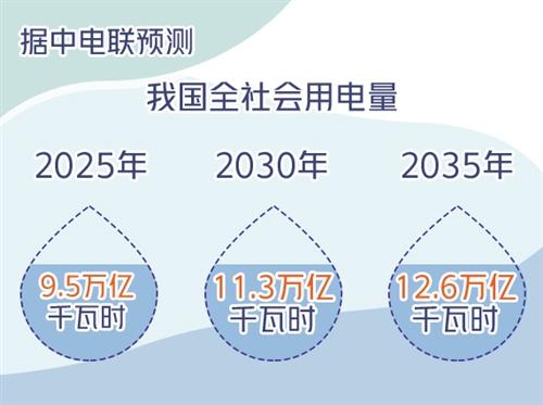 据中电联预测,2025年、2030年、2035年我国全社会用电量分别达到9.5万亿、11.3万亿、12.6万亿千瓦时,“十四五”“十五五”“十六五”期间年均增速分别为4.8%、3.6%、2.2%。