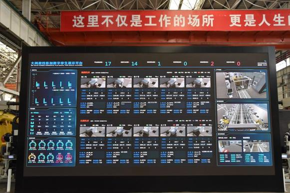 三一重工18号厂房大屏上显示的“挖掘机指数”。新华社记者 白田田 摄