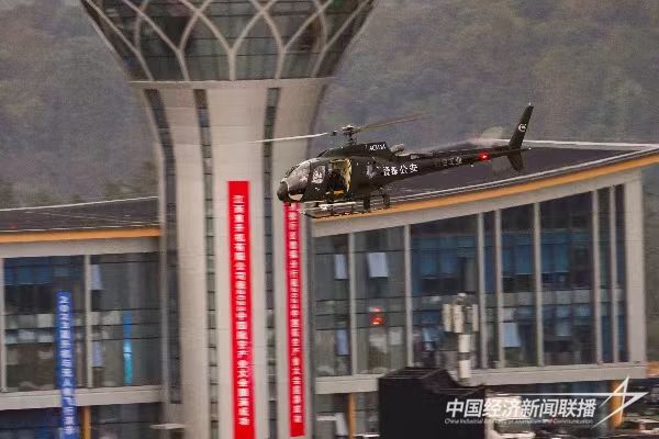 中经联播讯(金向友 庄秋风 通讯员 汤向伟)10月28日,2023中国航空产业大会“直升机与无人机飞行演示”在景德镇浮梁机场举行。“吉祥鸟”AC311、AC311A警用直升机为人民警察插上“翅膀”在大会上大显身手,提高人民警察完成任务的能力和成功率,增强了全社会的安全感。