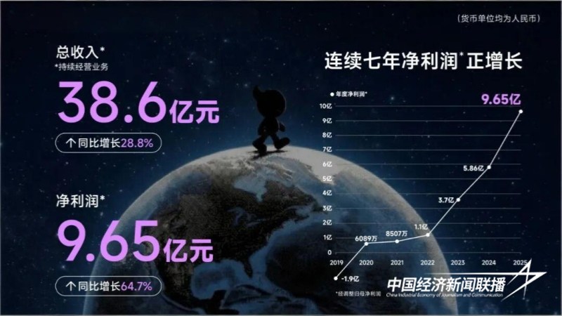 中经联播讯(马海彤 应晓丹)3月27日,美图公司(1357.HK)披露2025年度业绩:持续经营业务的总收入38.6亿元(人民币,下同),同比增长28.8%。经调整后归属于母公司权益持有人净利润9.65亿元,同比增长64.7%,连续七年正增长。