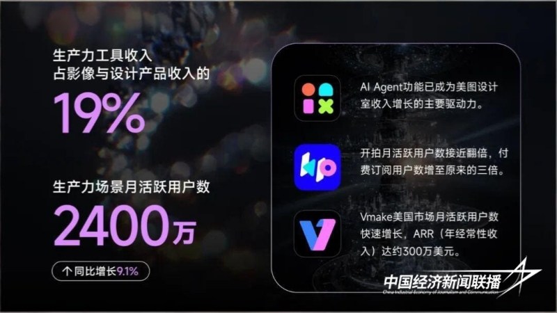 2025年,美图公司生产力工具的产品能力和变现能力持续增强,该部分收入占影像与设计产品收入的19%。