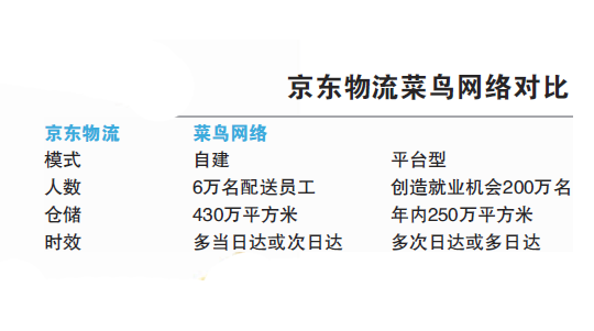 邵钟林认为,从模式上看,双方并不具备太大可比性,“从多个层面看,目前的格局也符合市场行为”。以自营电商平台起家的京东在物流方面同样采用自建模式,涉及仓储、配送等多个环节。而以平台起家的阿里在物流方面依旧采取平台战略。在邵钟林看来,这也是发展模式所决定的。