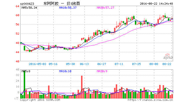 东阿阿胶近期股价一度突破60元,动态估值超过20倍。结合2016年半年报,我感觉其已经进入明显的风险区。