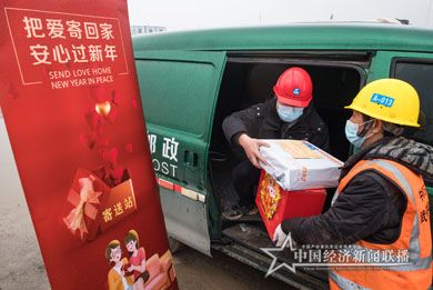 邮局工作人员到工地现场收寄员工寄回家的礼物