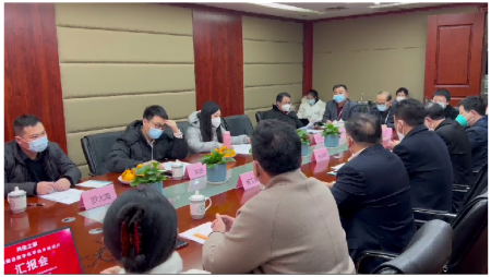 出席汇报会的其雨集团领导(从右向内)崔文杰、杨坤运、张兴旺、秦大金