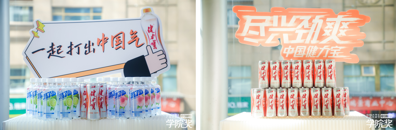 场外,健力宝优秀创意作品落地展示,吸引了众多同学驻足留念。这些闪耀着创意花火的作品不仅印证了健力宝强大的国民度,也让无数参会师生感受到新青年的创意力量。