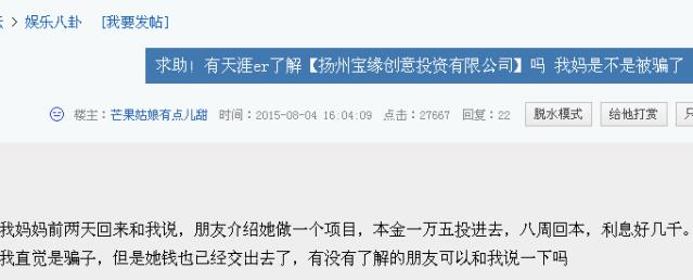 网友胡玲说: 不知道是不是真的,不过听了有点心动,但是总觉得不妥,没那么好的事,说是1.5万一单,5年不动变100万呢,呵呵!