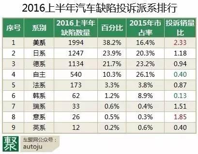 一、 投诉量增长:美系成第一