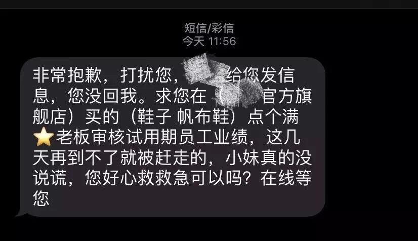 狂轰乱炸型:简单来说就是不仅在平台私信你索要好评,还给你的手机发短信、打电话索要好评,并且一天多次。