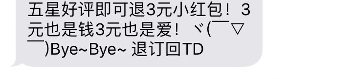 利诱型:五星好评即可退3元小红包!3元也是钱,3元也是爱!
