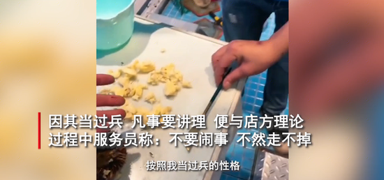 李先生反映,海胆蒸蛋里面只有蛋,澳龙也被调包了,因为自己当过兵,凡事要讲道理,便想与店方争论,过程中,一女服务员好心告诉其不要闹事,不然走不掉……