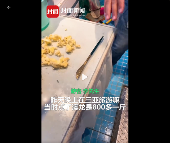 事后,李先生向记者介绍:“那天晚上,我们在三亚旅游嘛,在那家店里面,当时给我们点的那只澳龙是800多一斤嘛,市场价也就四、五百块钱,但是,我说你景点好一点嘛,海景好一点嘛,我说800块钱就800块钱吧,上菜的时候,我们就感觉澳龙被调包了,我们也没吭声,我们点了6只海胆蒸蛋嘛,他那个海胆里面全部都是鸡蛋,一点海胆味道都没有,海胆的胆壳也是老的那种,按照我当过兵的性格,我还是想跟他们讲些理论的。”