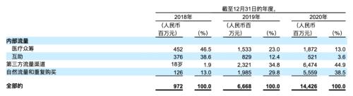 另外需要注意的是,水滴公司起家的水滴筹业务在整体流量占比上逐年下跌。其为公司带来的流量自2018年至2020年的占比分别为46.5%、23%、13%,而第三方流量渠道的占比逐渐增加,三年占比变化分别为1.9%、34.8%、44.9%,显示了水滴公司内部流量与自然流量计重复购买消费力的减弱,以及外部采买流量压力的剧增。
