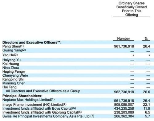 IPO前,水滴创始人、CEO兼董事会主席沈鹏、联合创始人兼董事杨光、联合创始人兼董事胡尧核心管理层持有26.4%股权。腾讯持股22.1%,此外,博裕资本、高榕资本、瑞士再保险三家机构分别持有11.9%、6.5%、5.7%股权。