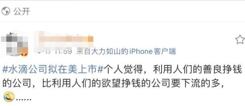 水滴公司上市的消息出来之后,不少网友的意见偏负面一些。