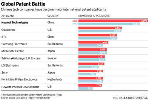 《华尔街日报》的另一篇报道称,三家中国企业(或在中国运营的企业)很有可能会在未来一段时间内对苹果发起跨国专利诉讼,因此它们手中的专利数量非常惊人,这三家企业分别是华为、中兴以及高通。