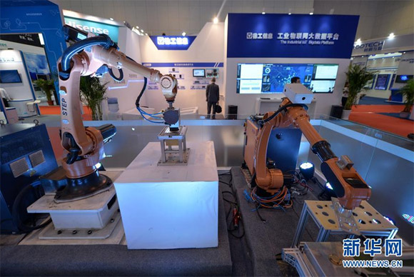 6月29日,在世界智能大会现场,一家参展企业展示智能产品。新华社记者白禹摄