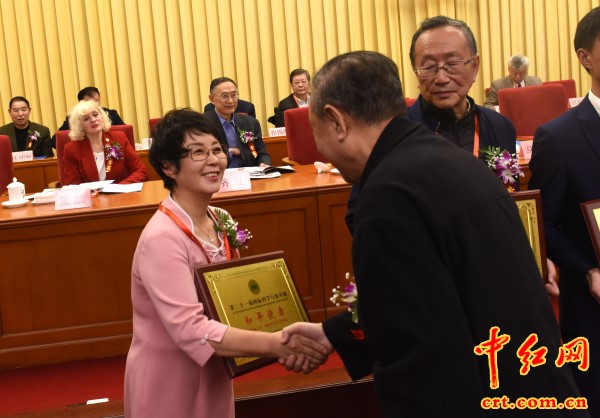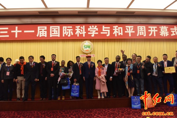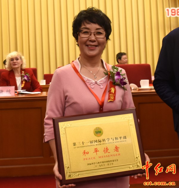 国际科学与和平周中国组委会副主任张景华在开幕式上荣获第三十一届国际科学与和平周和平使者称号。(杨建国摄)