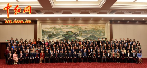 国际科学与和平周中国组委会副主任张景华(右十)在开幕式上荣获第三十一届国际科学与和平周和平使者称号后与社会各界代表合影。(杨建国摄)