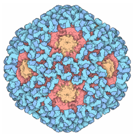 图1。 HPV结构:左为模式图,右为电镜图,主要显示的是HPV的蛋白衣壳