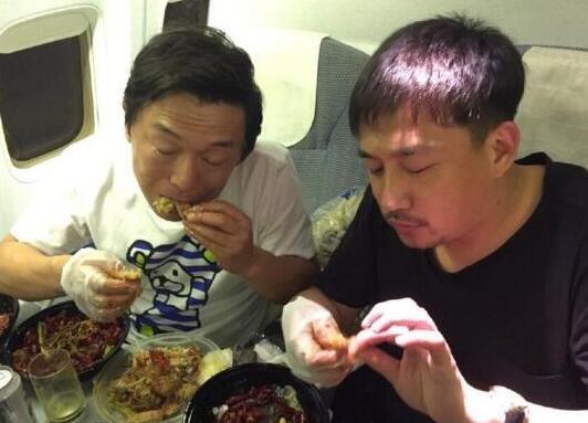 26日晚,孙红雷在微博晒出一组《极限挑战》的人马在飞机上的照片。照片中黄渤与黄磊大开吃戒,吃得油光满面,一脸满足。