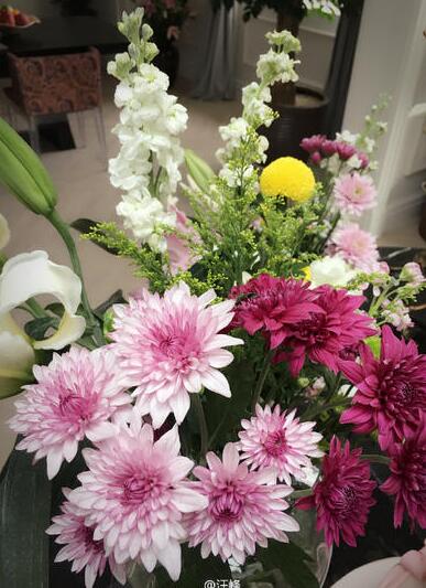5月4日,汪峰更新微博晒出章子怡素颜赤脚插花的照片,发文称:“盗醒妈的图,容我得瑟一下。贤惠的美女纸,可为什么又光着脚不穿鞋。” 章子怡晋升妈妈后注重生活品质,赤脚素颜插花怡然自得。